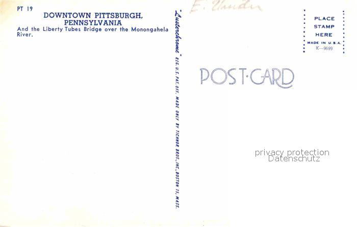72907184 Pittsburgh Liberty Tubes Bridge Monongahela River postalisch nicht gelaufen Erhaltung siehe scans [NatalD47] KatCode: 14140410000000