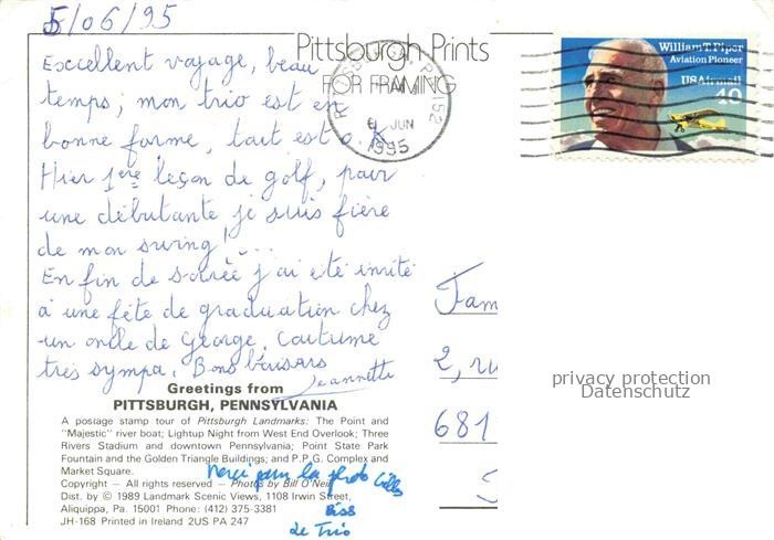 74015126 old postcard Pittsburgh Pennsylvania USA River Boat Stadium Point State Park Fountain Golden Triangle Buildings P.P.G. Complex Market Square postalisch gelaufen Erhaltung siehe scans [FriedD77] KatCode: 14140410000000