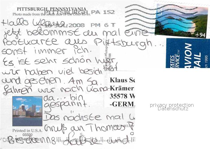 72868490 old postcard Pittsburgh Skyline postalisch gelaufen Erhaltung siehe scans [WerneD78] KatCode: 14140410000000