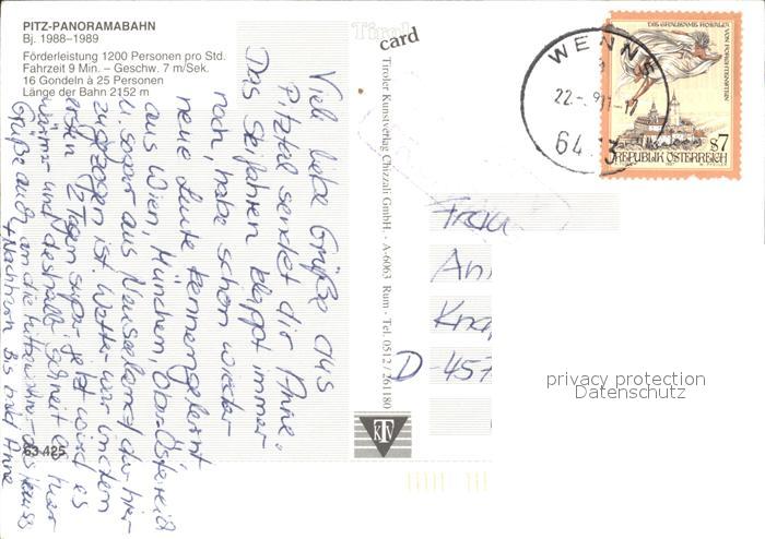 72317354 alte Postkarte Pitztal Treffpunkt Ski-Asse Panoramabahn postalisch gelaufen Erhaltung siehe scans KatCode: 11390