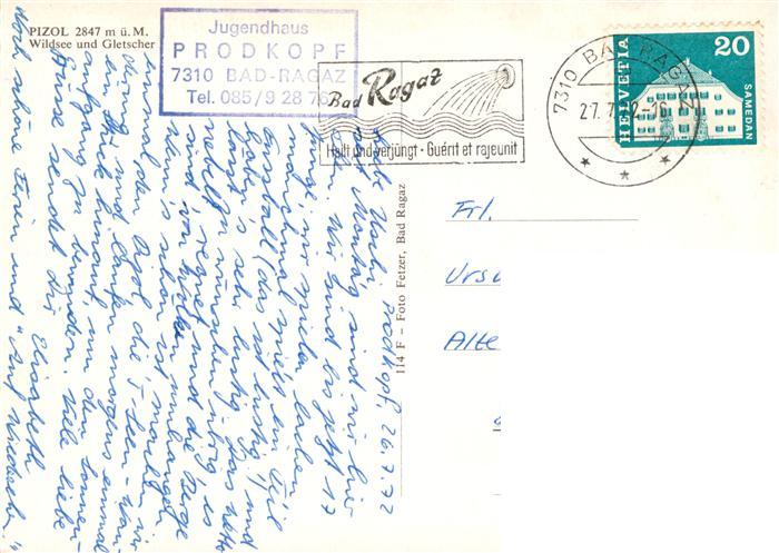 13920966 alte Postkarte Pizol 2847m SG Wildsee und Gletscher postalisch gelaufen Erhaltung siehe scans [FriedD77] KatCode: 11470360175986