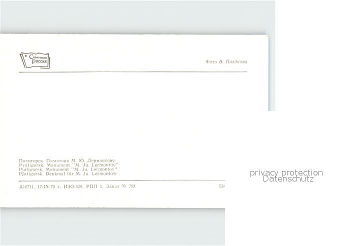 Pjatigorsk Denkmal M Ju Lermontow postalisch nicht gelaufen Erhaltung siehe scans