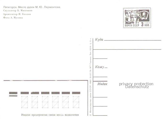 74042156 Pjatigorsk Platz der Duel Mihaill Lermontov postalisch nicht gelaufen Erhaltung siehe scans [IrynaD87] KatCode: 11440