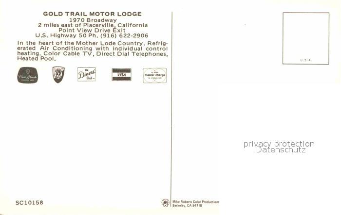 72892131 Placerville California Gold Trail Motor Lodge Swimming Pool postalisch nicht gelaufen Erhaltung siehe scans [FriedD77] KatCode: 14140050000000
