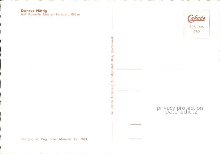 71847717 Plaettig Kurhaus Fliegeraufnahme mit Kapelle Maria-Frieden postalisch nicht gelaufen Erhaltung siehe scans KatCode: 11110008211000