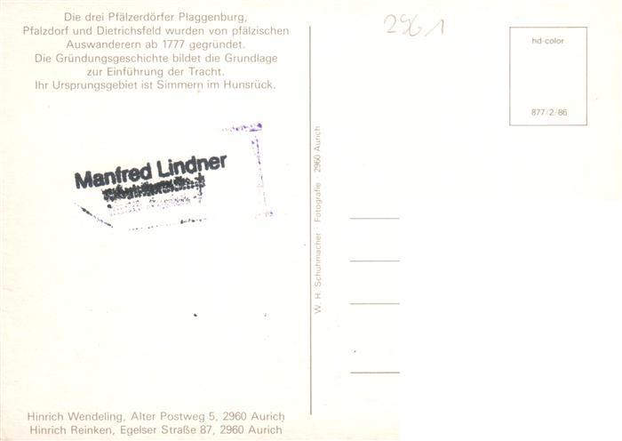 73929636 Plaggenburg Aurich mit Pfalzdorf und Dietrichsfeld Volkstanz und Trachtengruppe der Pfaelzerdoerfer in Ostfriesland postalisch nicht gelaufen Erhaltung siehe scans [WerneD78] KatCode: 11110003452001