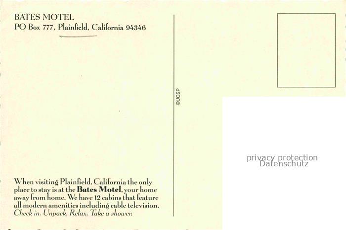 74095332 Plainfield California USA Bates Motel postalisch nicht gelaufen Erhaltung siehe scans [WerneD78] KatCode: 14140050000000
