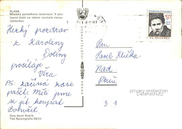 old postcard Plana Plan Mestska pamatkova rezervace postalisch gelaufen Erhaltung siehe scans [FriedD77]