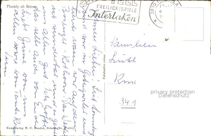 12057005 alte Postkarte Planalp ob Brienz postalisch gelaufen Erhaltung siehe scans KatCode: 11470060175240