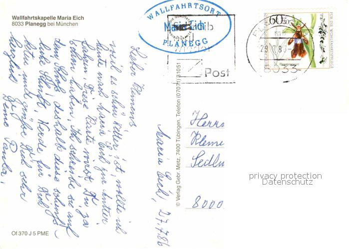 72720809 alte Postkarte Planegg Wallfahrtskapelle Maria Eich postalisch gelaufen Erhaltung siehe scans [LiesaD40] KatCode: 11110009184138