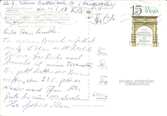 alte Postkarte Planetarium Observatorium Katowice-Chorzow postalisch gelaufen Erhaltung siehe scans