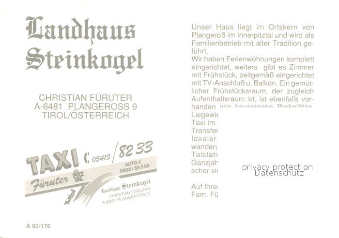 73630009 Plangeross Landhaus Steinkogel postalisch nicht gelaufen Werbekarte (keine Postkarte) Erhaltung siehe scans [WerneD78] KatCode: 11390334070217