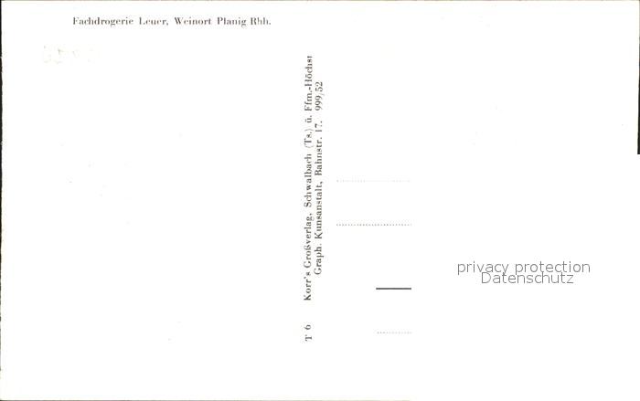 31722046 Planig Rheinhessen Drogerie Leuer postalisch nicht gelaufen Erhaltung siehe scans KatCode: 11110007133006