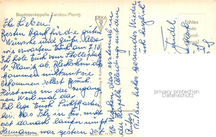 73031454 Planitz Zwickau Baptistenkapelle postalisch nicht gelaufen Erhaltung siehe scans [WerneD78] KatCode: 11110014167000