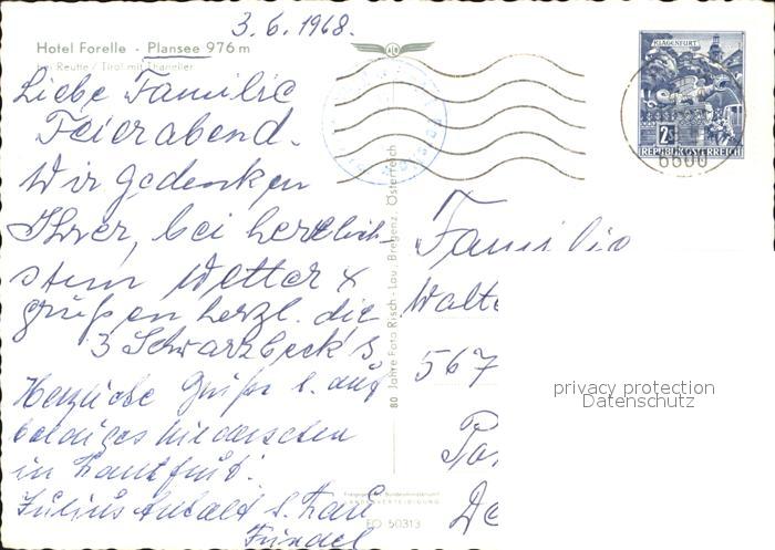 72489613 alte Postkarte Plansee Fliegeraufnahme mit Hotel Forelle postalisch gelaufen Erhaltung siehe scans KatCode: 11390331070805