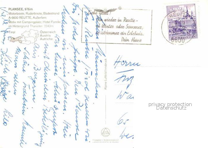 72862227 alte Postkarte Plansee Fliegeraufnahme Reutte postalisch gelaufen Erhaltung siehe scans [LiesaD40] KatCode: 11390331070805