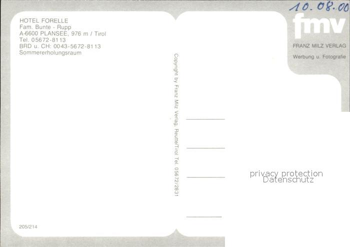 72244915 Plansee Hotel Forelle postalisch nicht gelaufen Erhaltung siehe scans KatCode: 11390331070805