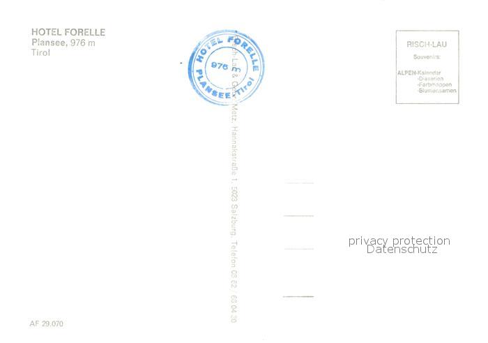 72967821 Plansee Hotel Forelle Partei am See postalisch nicht gelaufen Erhaltung siehe scans [LiesaD40] KatCode: 11390331070805