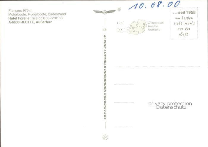 72244916 Plansee Reutte Hotel Forelle Fliegeraufnahme postalisch nicht gelaufen Erhaltung siehe scans KatCode: 11390331070805
