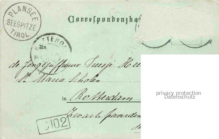 74010303 alte Postkarte Plansee Tirol AT Hotel Pension Seespitz im Mondschein Alpen Litho postalisch gelaufen Erhaltung siehe scans [FriedD77] KatCode: 11390331070805