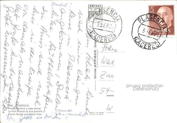 old postcard Plasencia Brueckenpartie postalisch gelaufen Erhaltung siehe scans