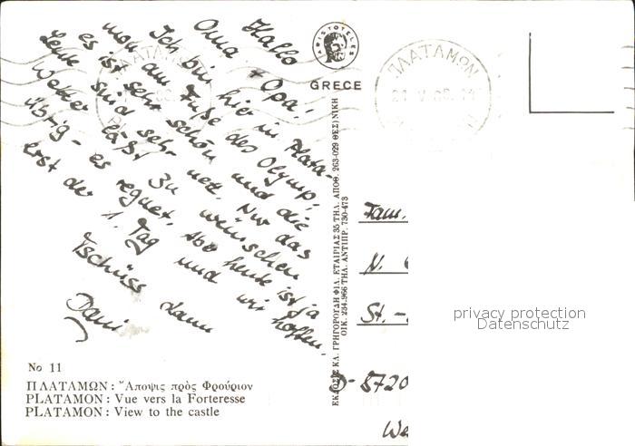 old postcard Platamon Forteresse postalisch gelaufen Erhaltung siehe scans