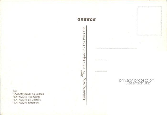 Platamon Ritterburg postalisch nicht gelaufen Erhaltung siehe scans