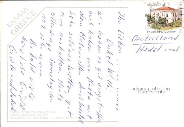 old postcard Platanias Teilansicht Palmen postalisch gelaufen Erhaltung siehe scans
