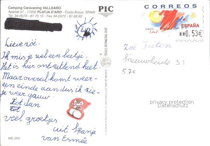 old postcard Platja d Aro Camping Caravaning Valldaro Schwimmbad Strand postalisch gelaufen Erhaltung siehe scans