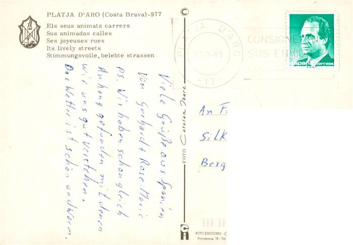 73905215 old postcard Platja d Aro Costa Brava ES Els seus animats carrers postalisch gelaufen Erhaltung siehe scans [FriedD77] KatCode: 11510