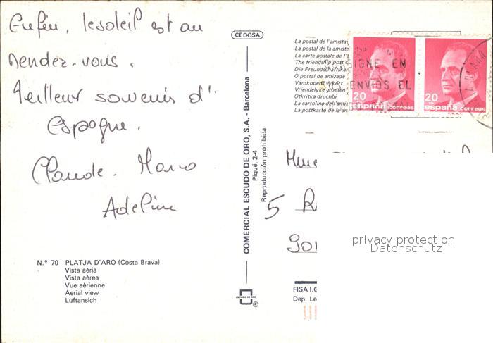 old postcard Platja d Aro Vista aeria postalisch gelaufen Erhaltung siehe scans