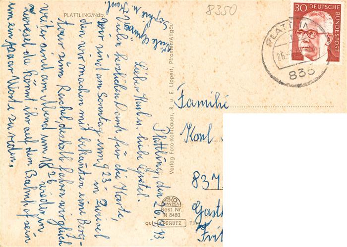 73891007 alte Postkarte Plattling Isar Bayern Fliegeraufnahme postalisch gelaufen Erhaltung siehe scans [FriedD77] KatCode: 11110009271146
