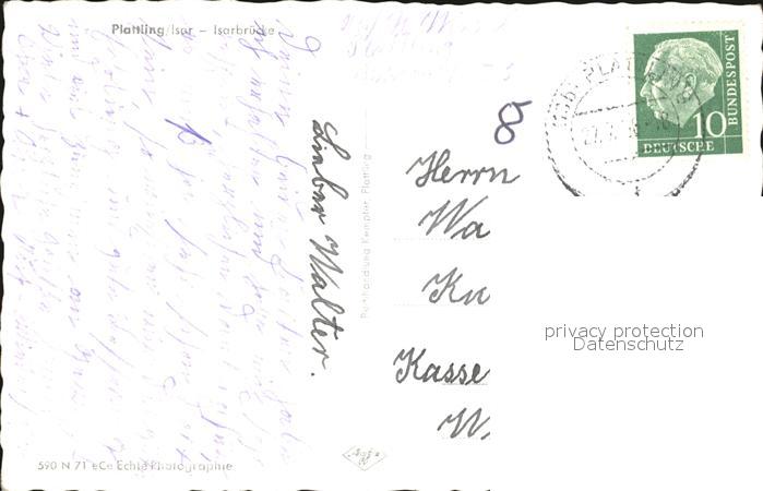 72478204 alte Postkarte Plattling Isar Bayern Isarbruecke postalisch gelaufen Erhaltung siehe scans KatCode: 11110009271146