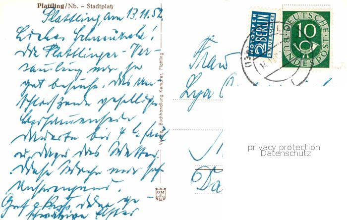 72762243 alte Postkarte Plattling Isar Bayern Stadtplatz postalisch gelaufen Erhaltung siehe scans [AndreD76] KatCode: 11110009271146