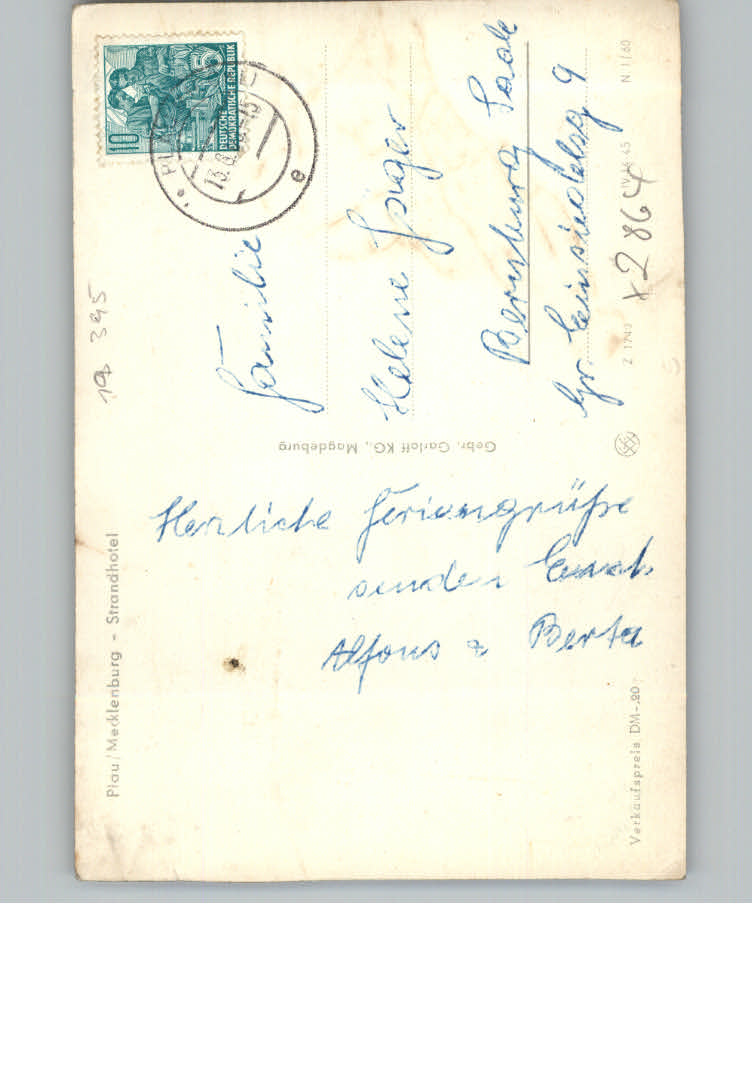 31166760 Plau Mecklenburg Hotel Strand postalisch nicht gelaufen KatCode: 11110013060061
