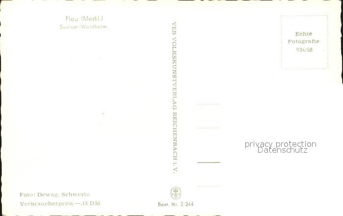 72407047 Plau Mecklenburg Seelust-Waldheim postalisch nicht gelaufen Erhaltung siehe scans KatCode: 11110013060061