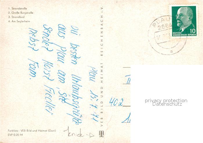 72950655 alte Postkarte Plau Mecklenburg Strandstrasse Grosse Burgstrasse Strandbad Am Seglerheim postalisch gelaufen Erhaltung siehe scans [WerneD78] KatCode: 11110013060061