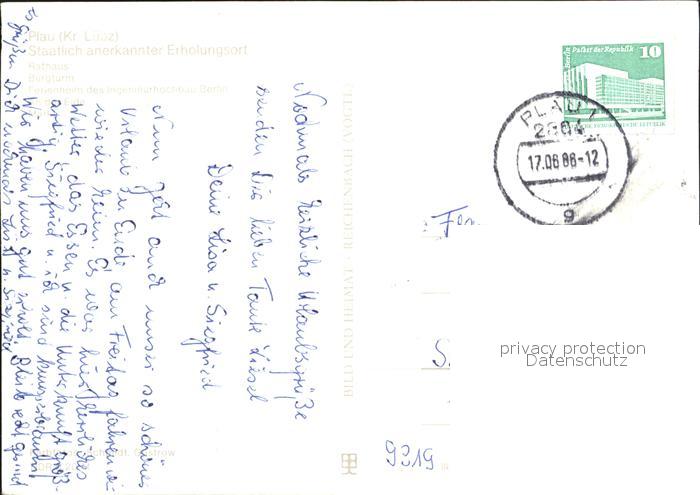 72333968 alte Postkarte Plau See postalisch gelaufen Erhaltung siehe scans KatCode: 11110013060061