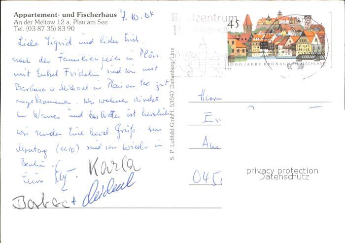 72331421 alte Postkarte Plau See Appartement- Fischerhaus Fliegeraufnahme postalisch gelaufen Erhaltung siehe scans KatCode: 11110013060061