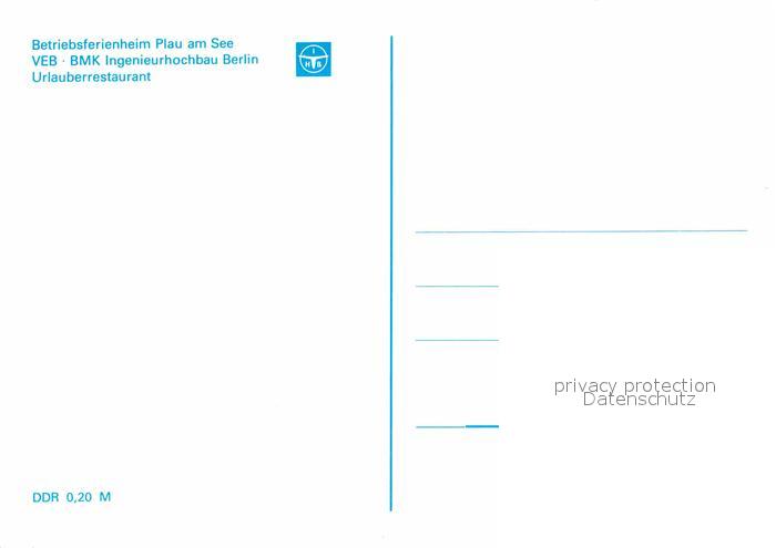 72841810 Plau See Betriebsferienheim BMK Ingenieurhochbau Berlin Urlauberrestaurant postalisch nicht gelaufen Erhaltung siehe scans [WerneD78] KatCode: 11110013060061