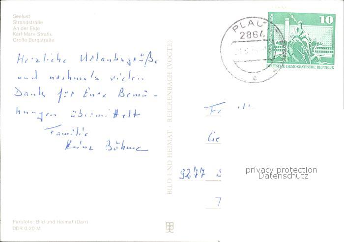 72323047 alte Postkarte Plau See Elde Seelust StrandCafe Burgstrasse postalisch gelaufen Erhaltung siehe scans KatCode: 11110013060061