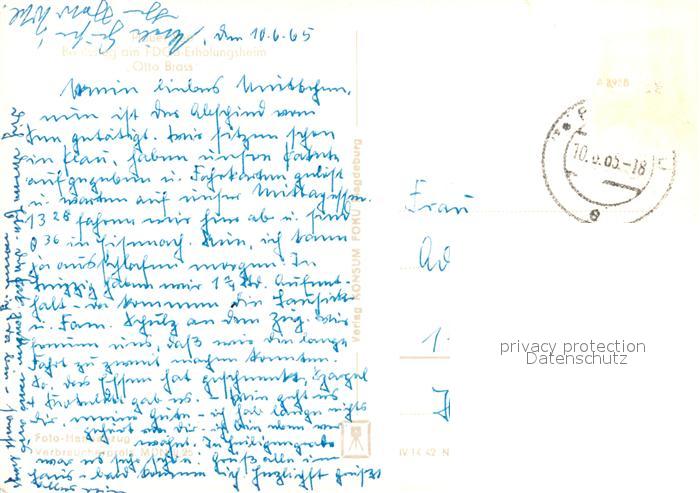 73551291 alte Postkarte Plau See FDGB Erholungsheim Otto Brass postalisch gelaufen Erhaltung siehe scans [WerneD78] KatCode: 11110013060061