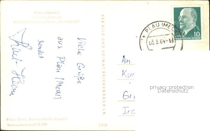 72007049 alte Postkarte Plau See FDGB-Erholungsheim Waldheim postalisch gelaufen Erhaltung siehe scans KatCode: 11110013060061