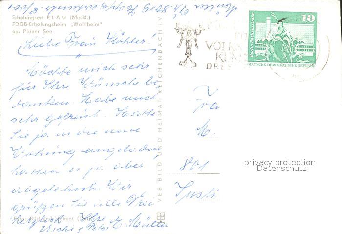 72077292 alte Postkarte Plau See FDGB Erholungsheim Waldheim postalisch gelaufen Erhaltung siehe scans KatCode: 11110013060061