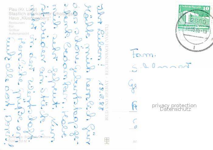 72682558 alte Postkarte Plau See Haus Klueschenberg Restaurant Bar Gillbar postalisch gelaufen Erhaltung siehe scans [LiesaD40] KatCode: 11110013060061