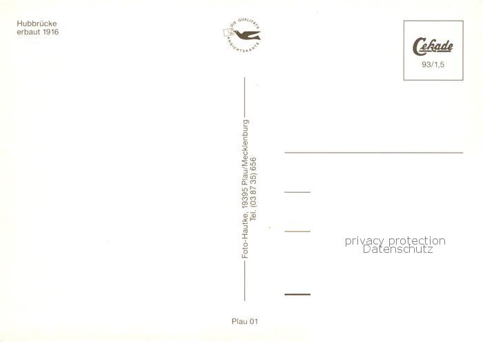 73840334 Plau See Hubbruecke postalisch nicht gelaufen Erhaltung siehe scans [FriedD77] KatCode: 11110013060061