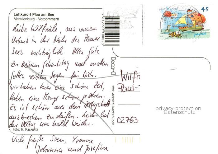 73217226 alte Postkarte Plau See Partie an der Elde Altstadt Turm Kanal Chronik postalisch gelaufen Erhaltung siehe scans [FriedD77] KatCode: 11110013060061