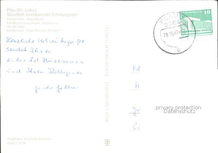72331420 alte Postkarte Plau See Pelztierfarm Appelburg Waldheim An der Elbe postalisch gelaufen Erhaltung siehe scans KatCode: 11110013060061