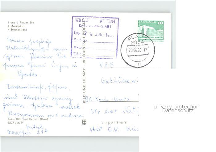 72384065 alte Postkarte Plau See Plauer See Marktplatz Strandstrasse postalisch gelaufen Erhaltung siehe scans KatCode: 11110013060061