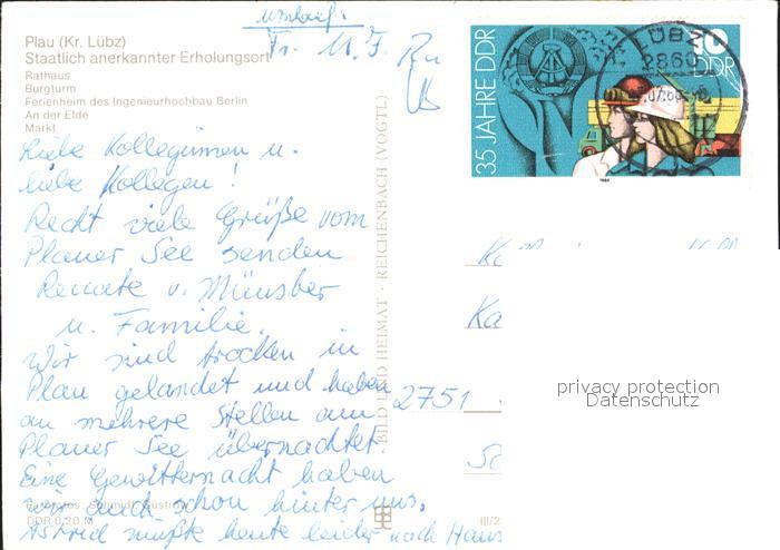 72328855 alte Postkarte Plau See Rathaus Burgturm Ferienheim Elde Markt postalisch gelaufen Erhaltung siehe scans KatCode: 11110013060061